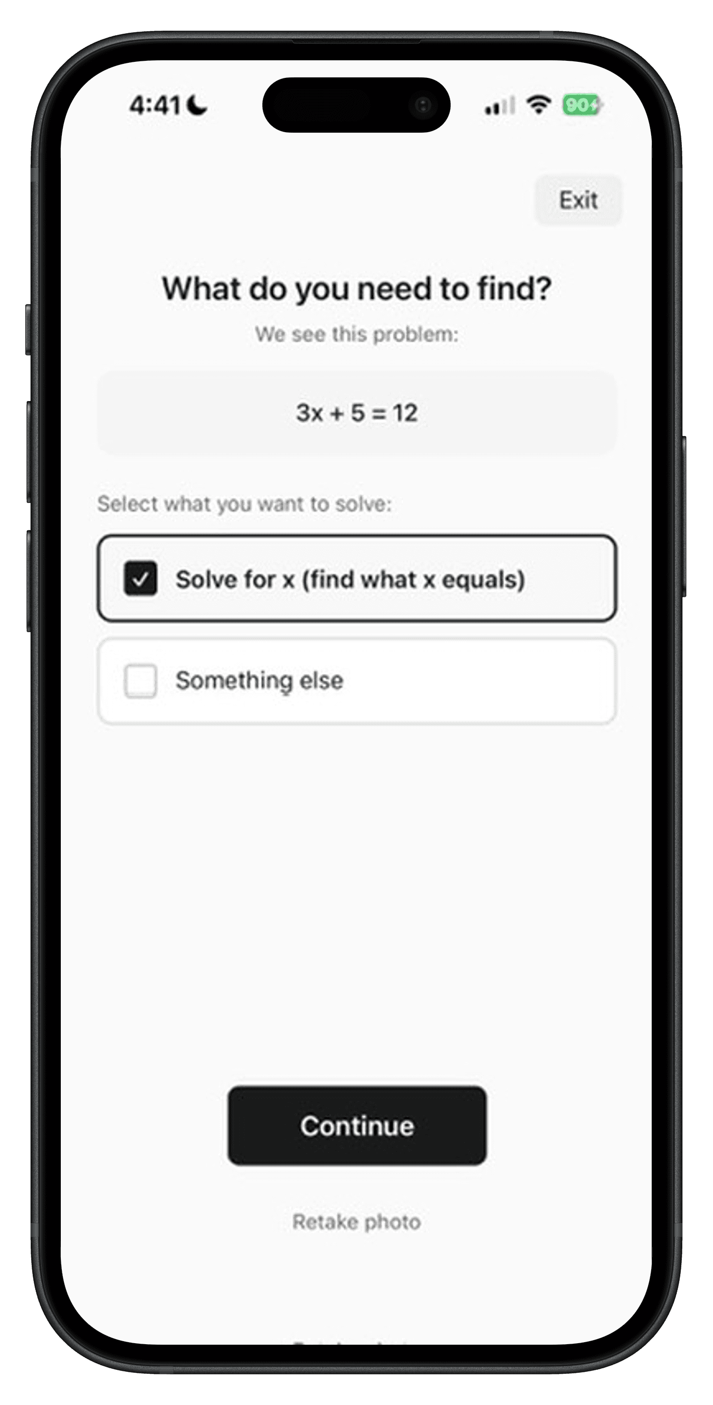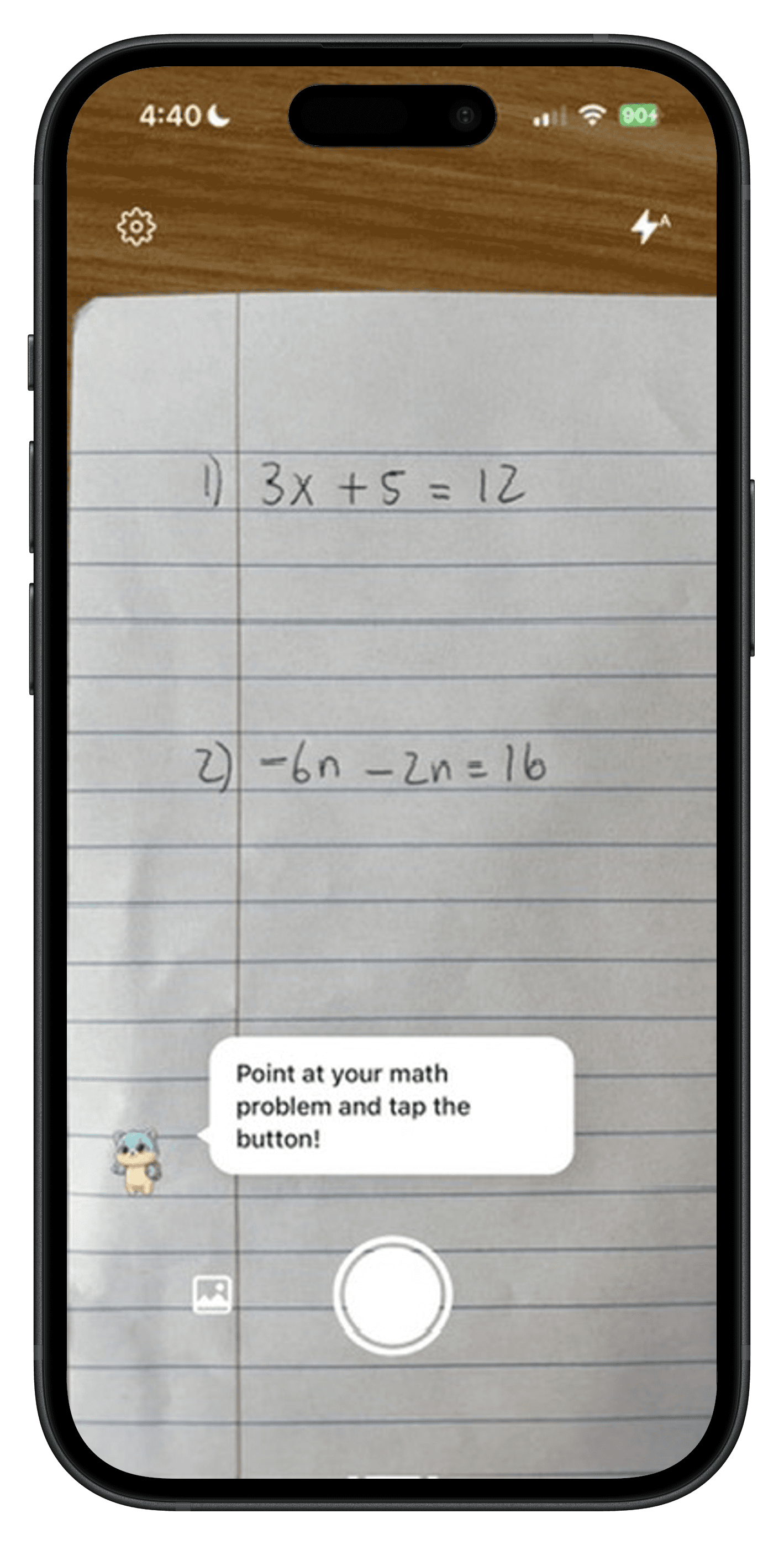 Take a photo of any math problem, homework, worksheets, or textbooks.