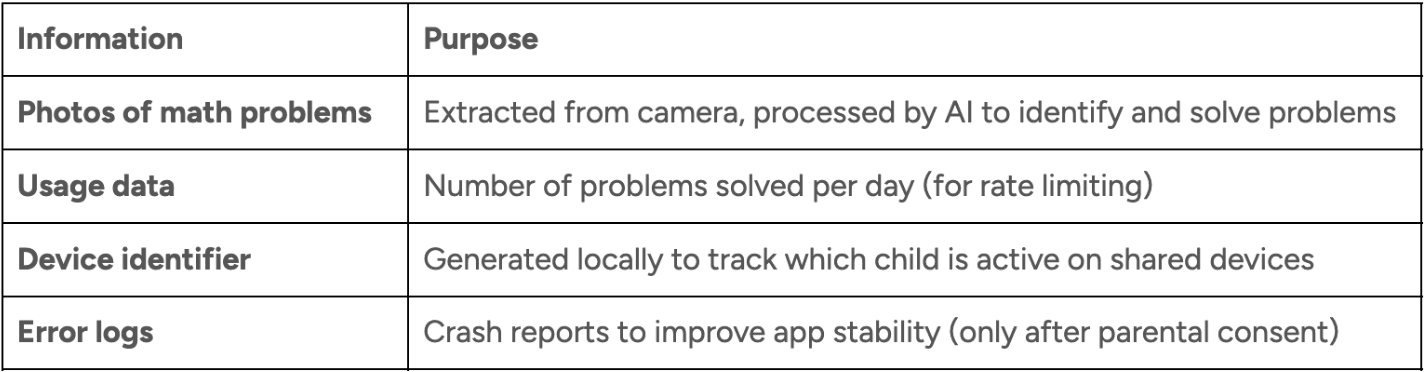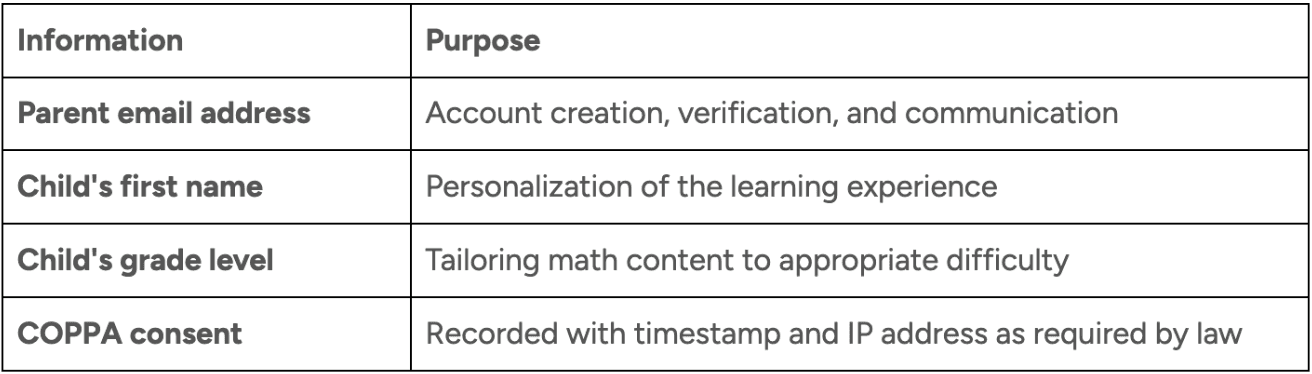 Explicit consent checkbox - Parents must check a box confirming they consent to data collection
