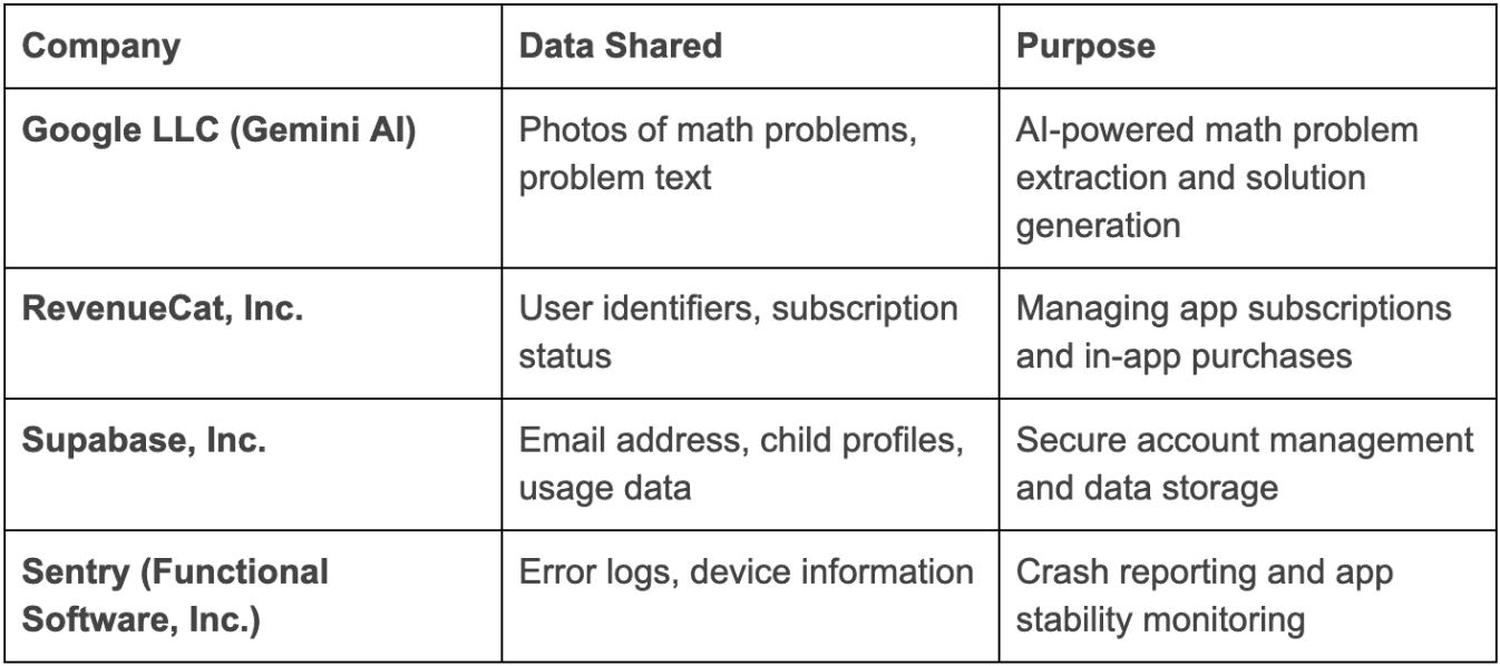We share information with the following third-party services to operate Hephra. These providers only access information necessary to perform their services and are bound by confidentiality obligations.